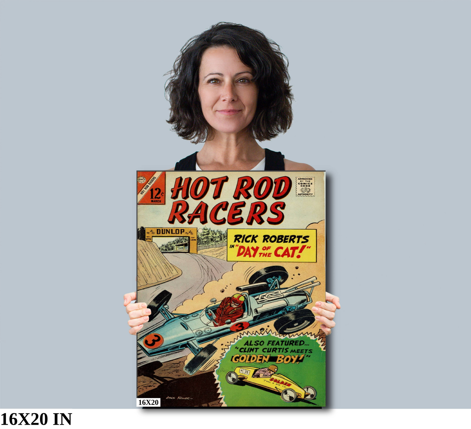 Hot Rod Racer Comic #13 is the perfect wall decor for any racing enthusiast. This comic brings you to the world of high-speed races with its vibrant colors and exciting action panels. Feel the thrill of the race from the comfort of your own home.