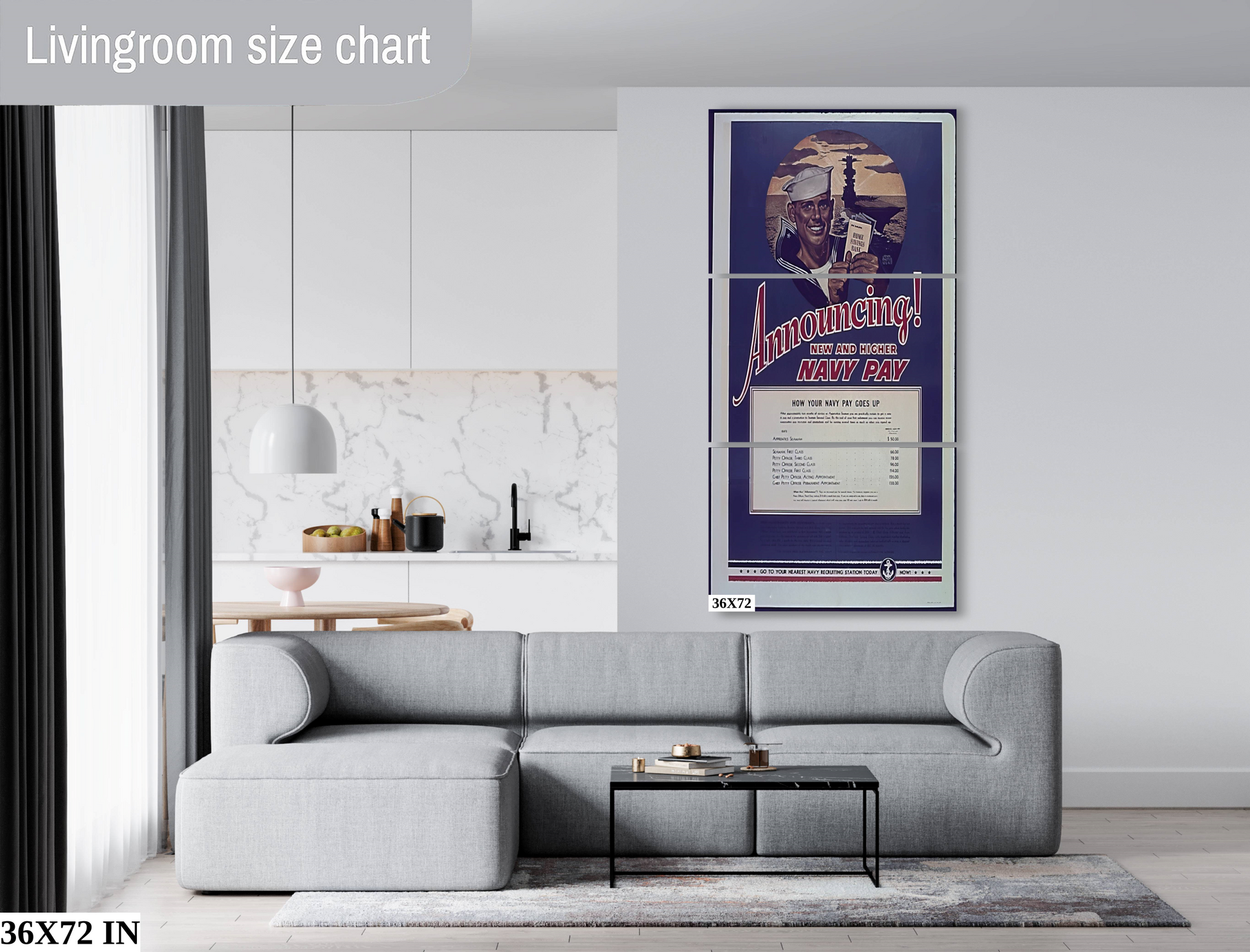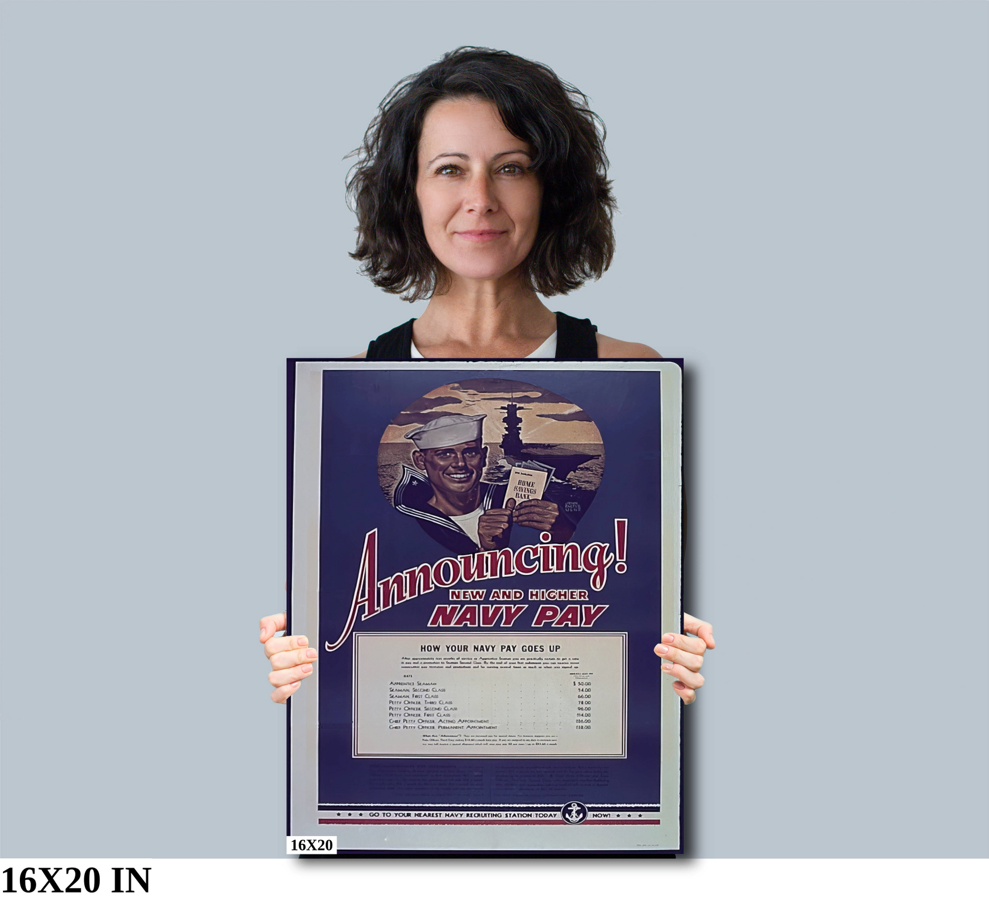 This New and Higher Navy Pay Second World War Poster is perfect for adding a classic touch to any room. Printed on canvas and premium photo paper, this poster is sure to impress with its detailed design and high-quality printing.