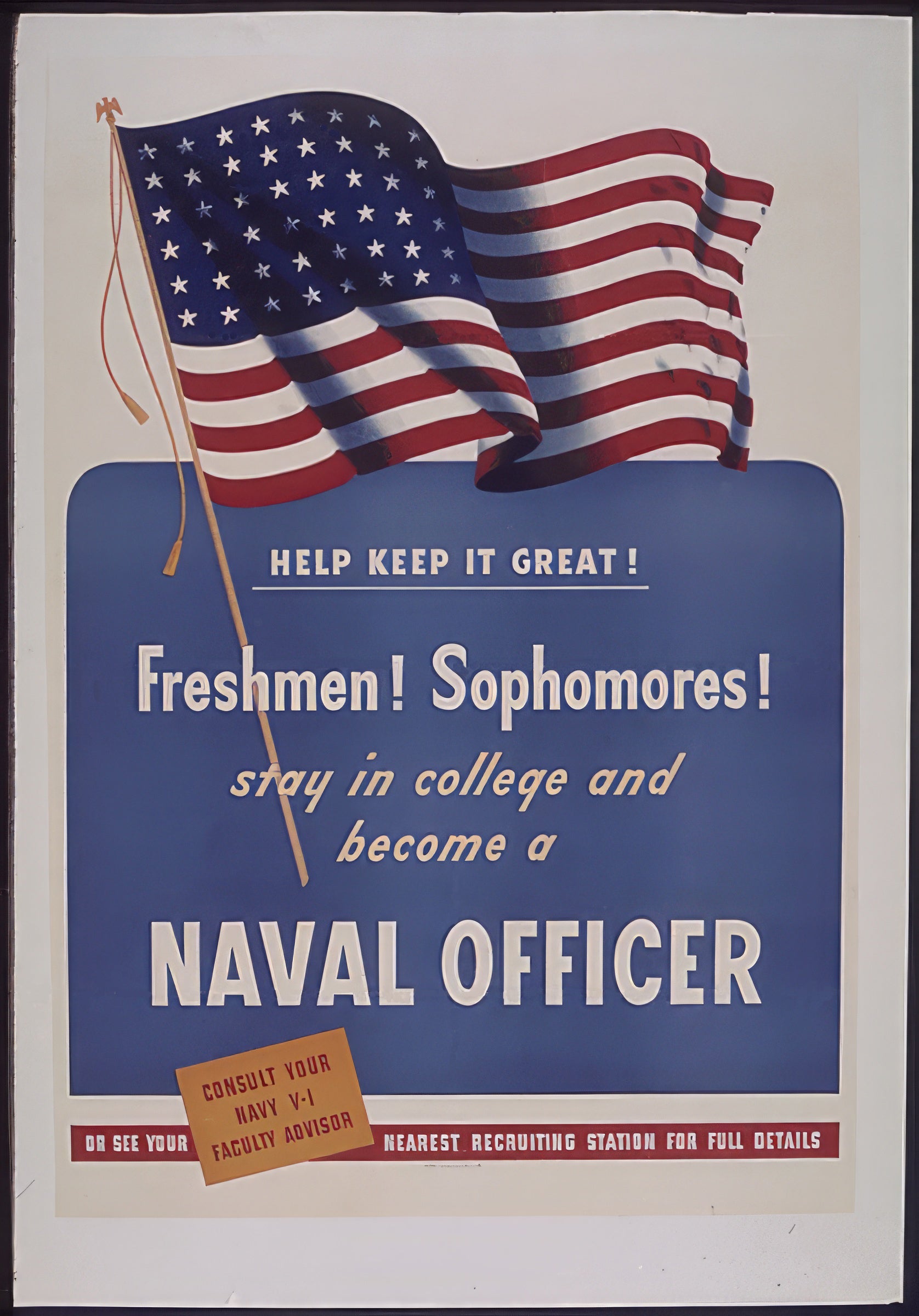 Stay in College and become a Naval Officer Second World War Poster