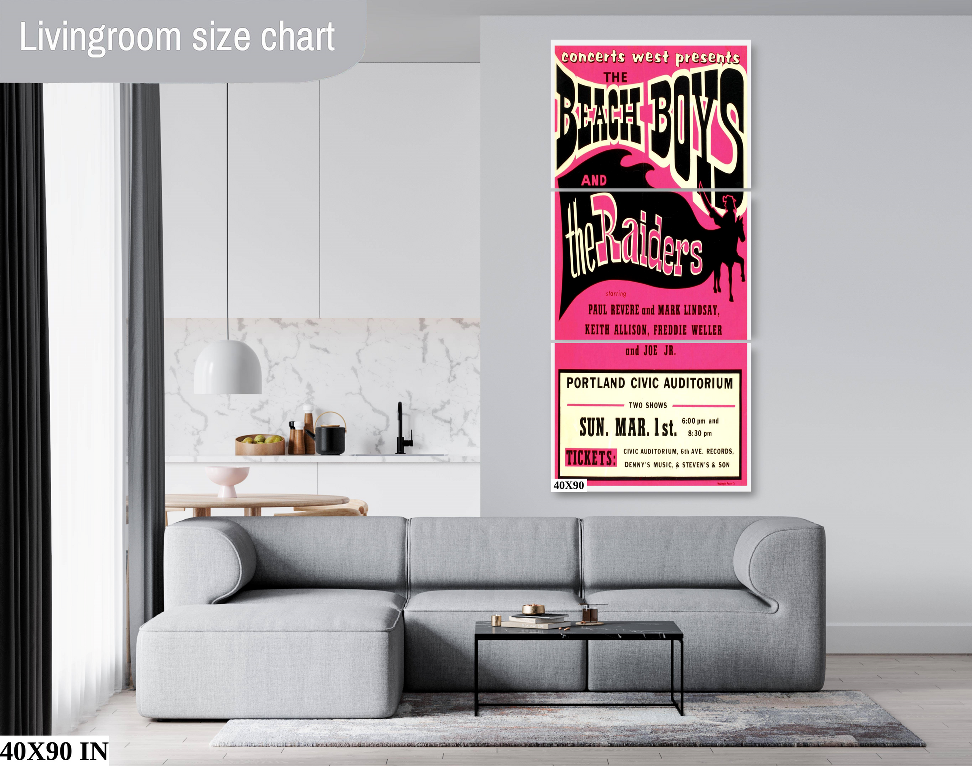 This highly collectable Beach Boys & Raiders concert poster from 1965 features iconic artwork from the era. It's the perfect addition to any fan's collection and a great way to display your enthusiasm for classic rock.